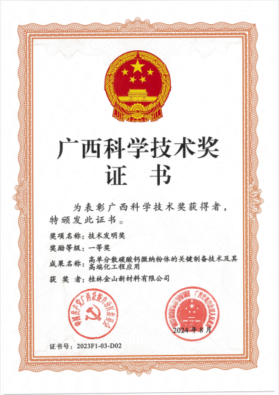 “中國碳酸鈣行業納米鈣第三強”